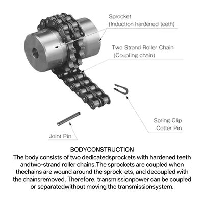 The core consists of two sprocket-type half couplings and a roller chain, often equipped with a protective cover. The main body is typically forged from 45# steel, with the chain and tooth surfaces undergoing quenching treatment for enhanced wear resistance and durability.